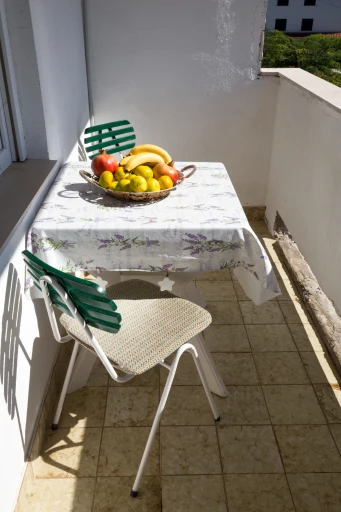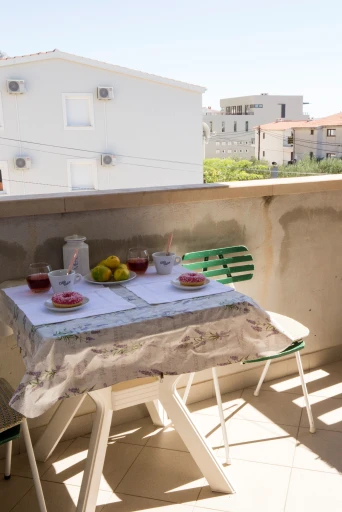 Apartman se nalazi na drugom katu, površine je 50 m² i udaljen je samo 50 metara od plaže. Plaža je pješčana. Ispred kuće nalaze se trgovina, pekara i bankomat, što boravak čini još praktičnijim.