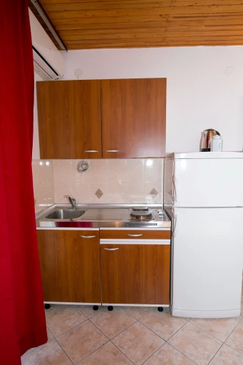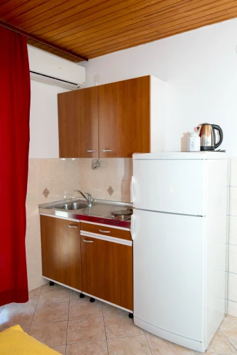 Apartman ima dvije sobe. U jednoj sobi nalazi se mini kuhinja opremljena mikrovalnom pećnicom, električnom pločom za kuhanje te hladnjakom sa zamrzivačem. Štednjak nije u apartmanu, ali ako vam zatreba, nije problem – rado vam možemo nešto ispeći u našoj kuhinji.